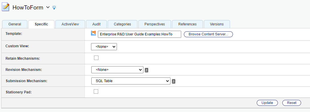 The FormTemplate object has been configured to be associated to an SQL Table named Z_HowTo.