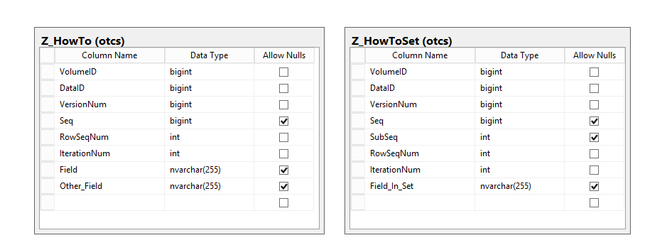 on Z_HowToSet ( VolumeID, DataID, VersionNum, Seq )