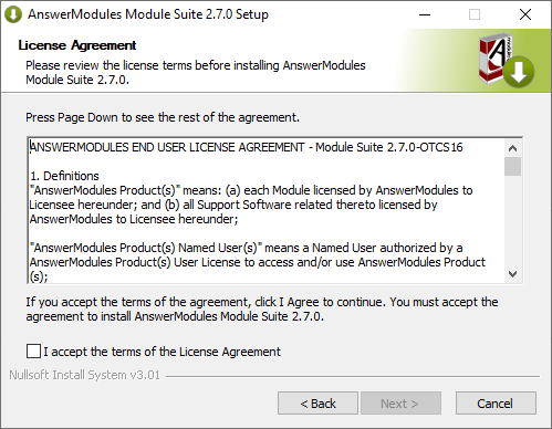 %OTCS_HOME%/module/amcontentscript_X_Y_Z/license/EULA Accepting the End User Agreement is mandatory to proceed with the installation.