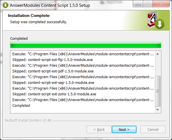 The following screens will guide you through the Content Script Module Master Installer steps required to install optional extension packages: