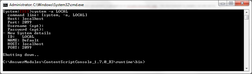 Upon creating a new system, the Script Console will require a restart and will automatically shutdown.