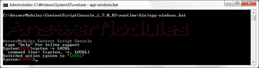 The active system indicator in the command prompt should now indicate LOCAL.
