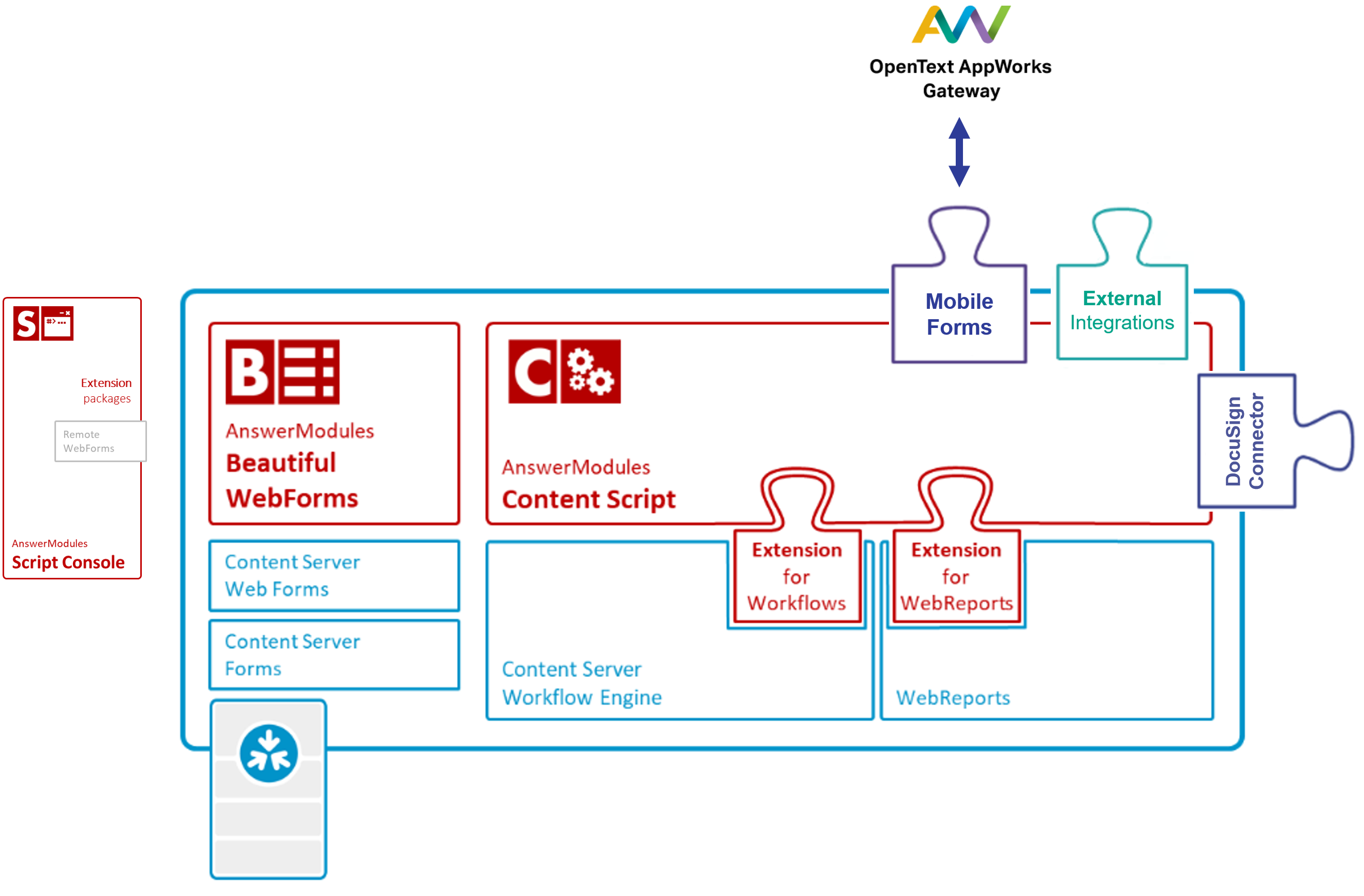 AnswerModules’ Mobile WebForms is both: - An add-on solution for CSP/xECM. - A functional extension for Module Suite (AnswerModules’ core solution).