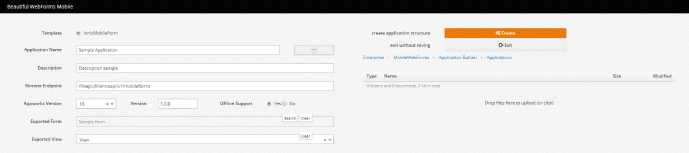 To deploy the application on the OpenText AppWorks Gateway it will be necessary to prepare a deployable package compliant with the OpenText AppWorks Gateway. The preparation of the up-said package can be done via the Mobile WebForms application by opening the form “Registered Applications”. The form can be found under Enterprise\MobileWebForms\Application Builder\Builder