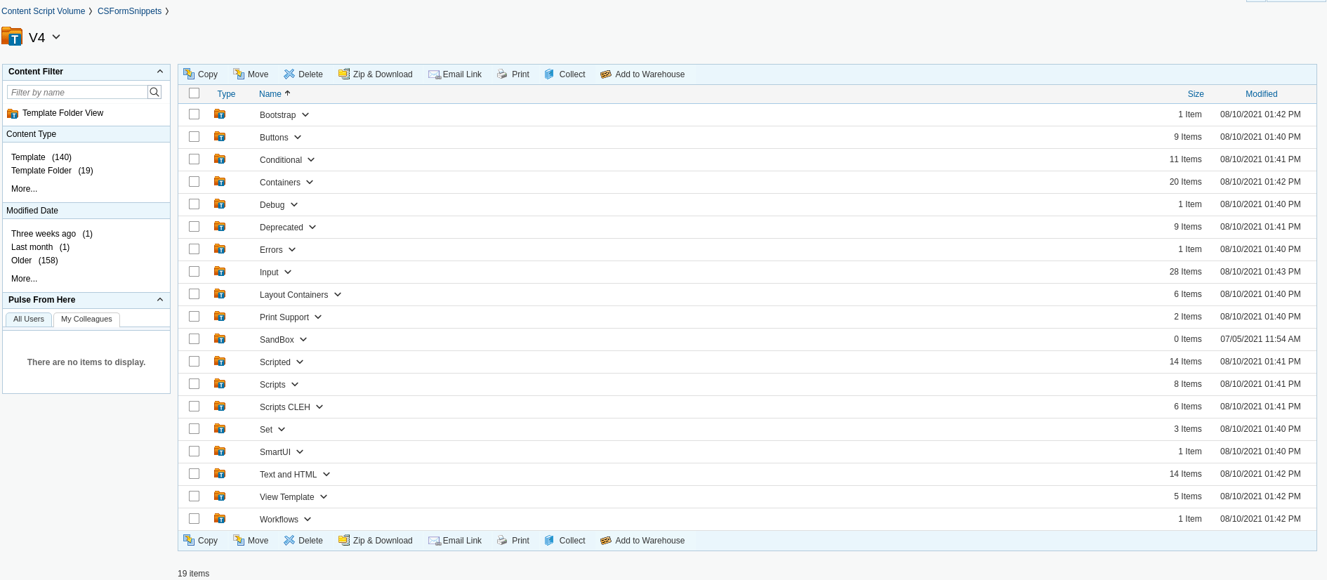 The Beatiful WebForms Snippets are stored in a two levels folders hierarchy: the first level is a library version container, while the second level is a container that identifies the Component Family.