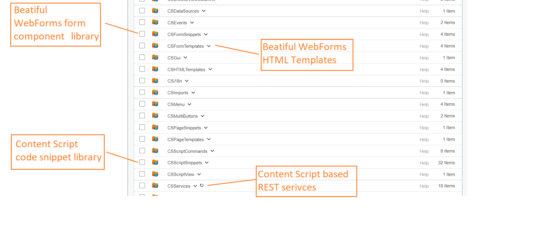 Content Script REST services are somehow related to Beautiful WebForms in that some components used to build forms (essentially, the ones with AJAX capabilities) make use of these services to work correctly.