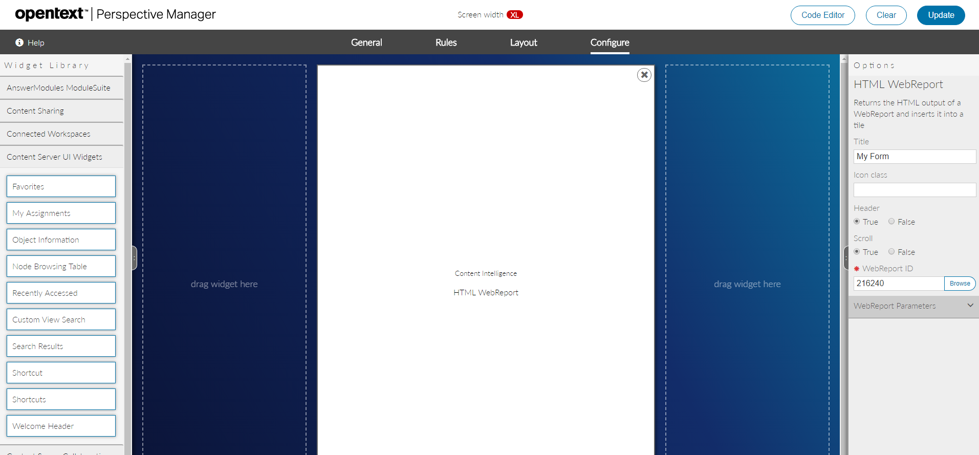 The configuration of the associated Content Intelligence:HTML WebReport will be as simple as: