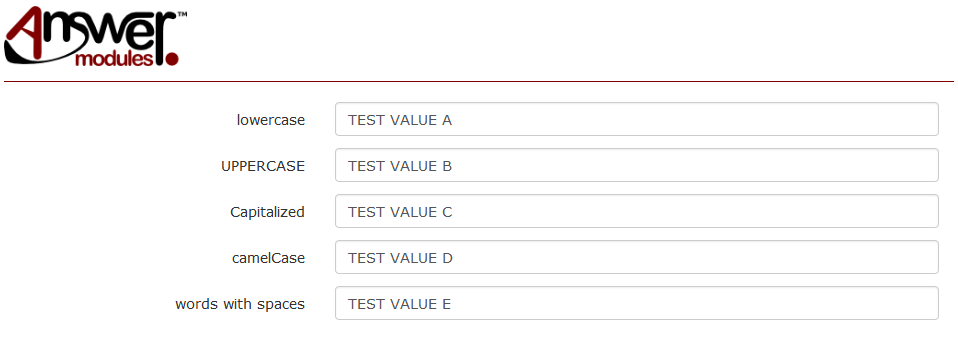 form.capitalized.value = “TEST VALUE C” // Form template field name: Capitalized