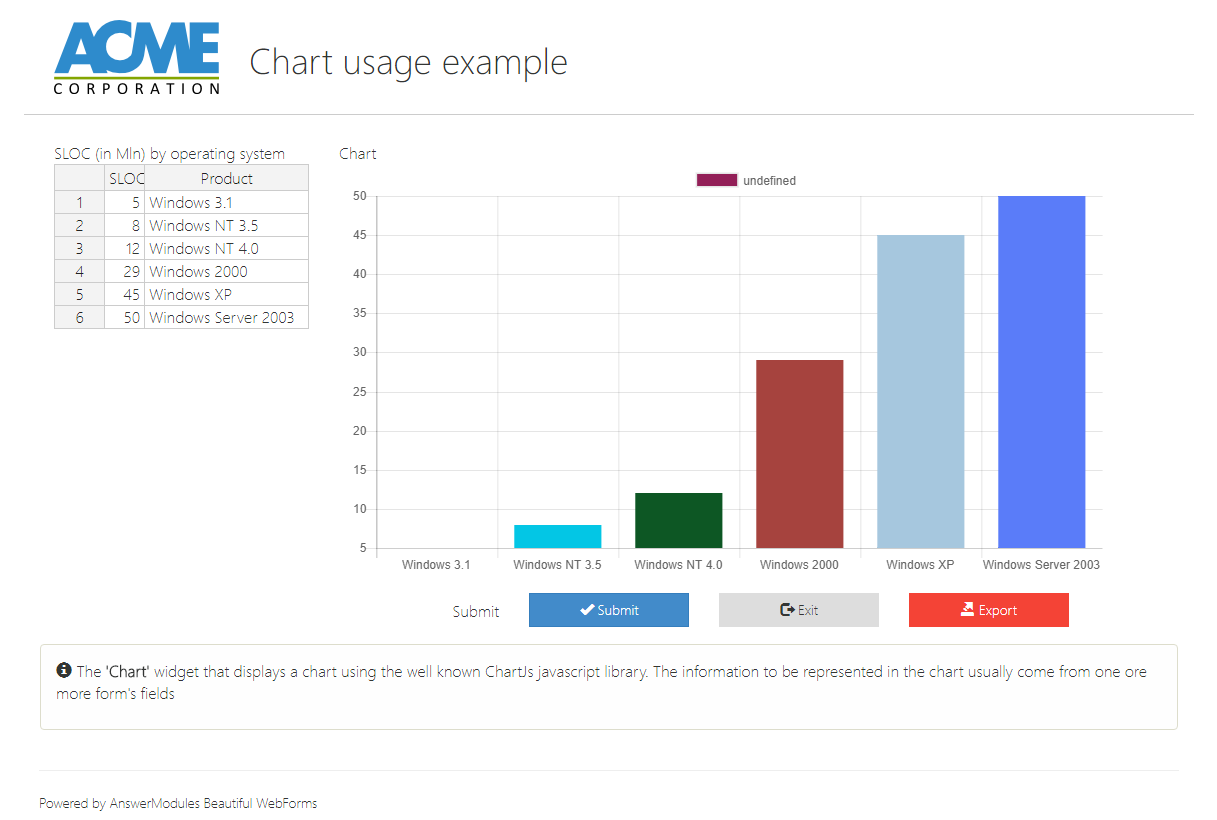 | Client id | input | myWidgetClientId | Chart only: a javascript identifier for the region in which the chart will be rendered, should be unique within the html page. |