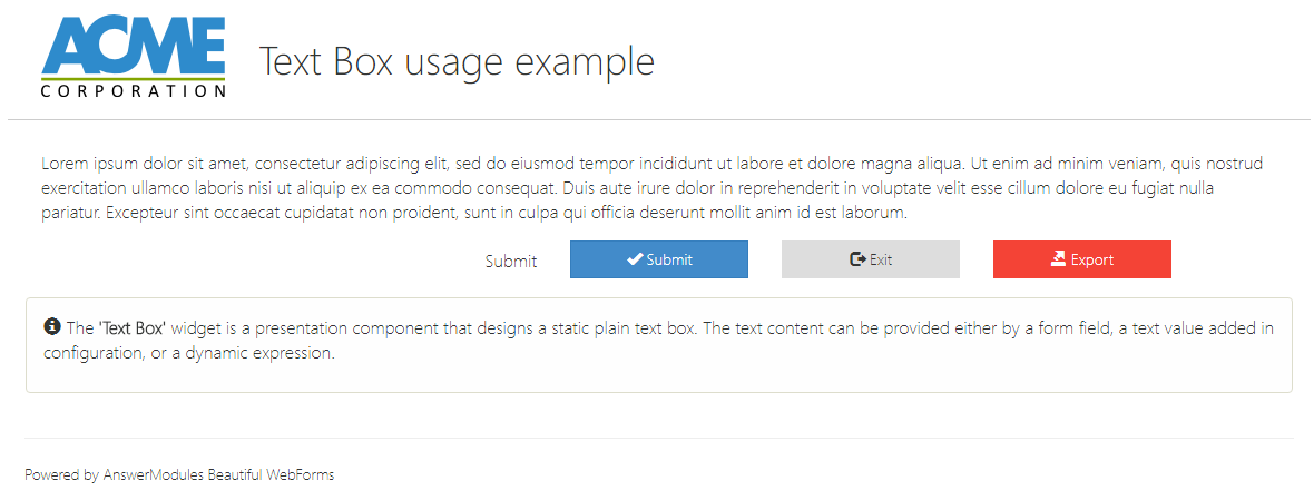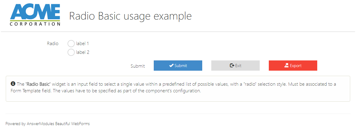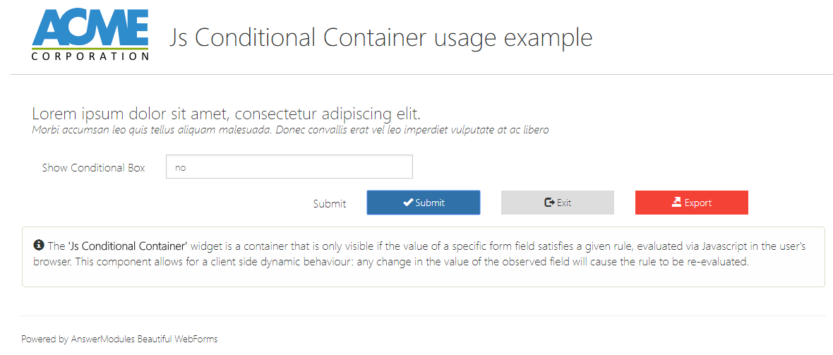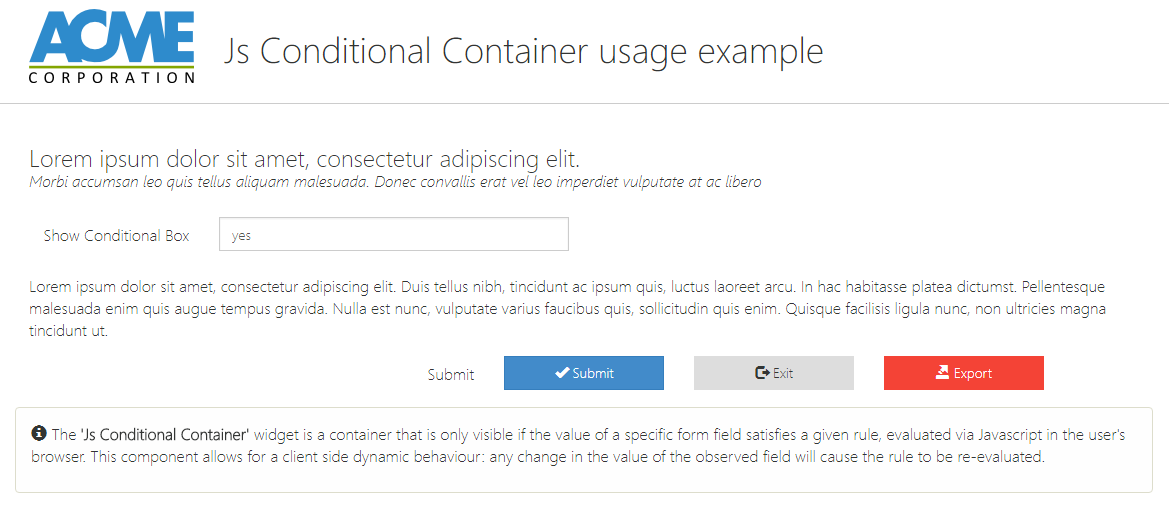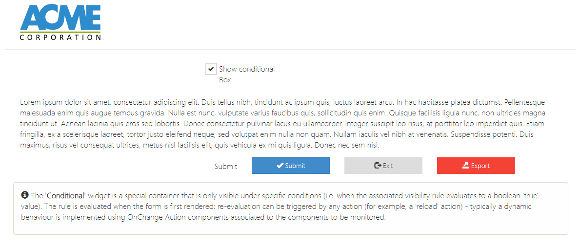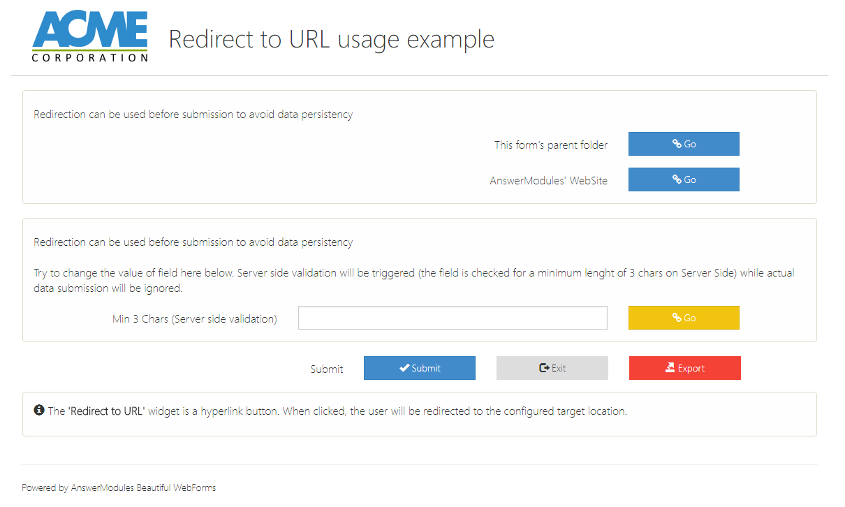 | Label Text | This button triggers a redirection after submission (can be hidden using the showIf property) |