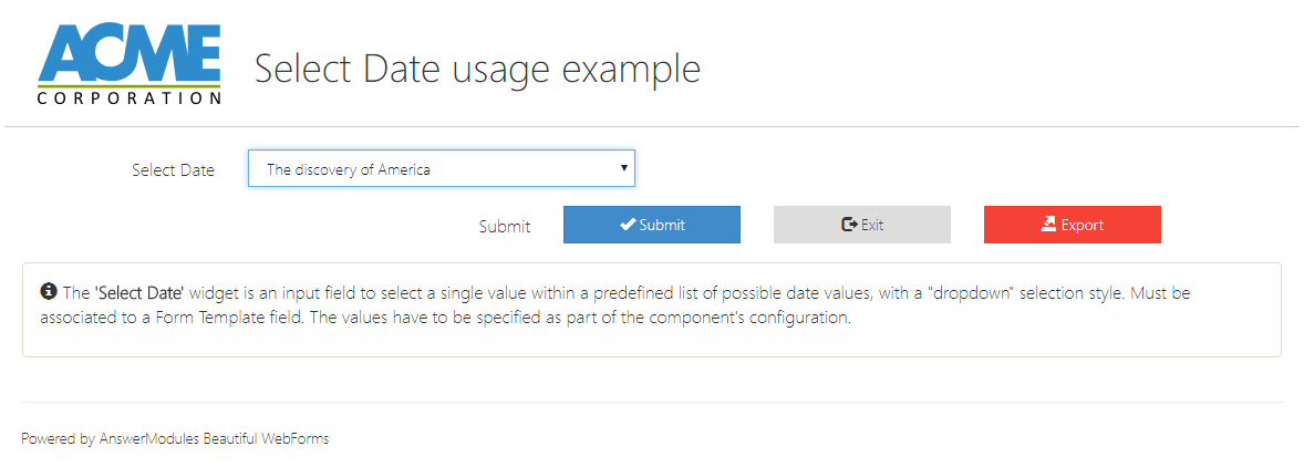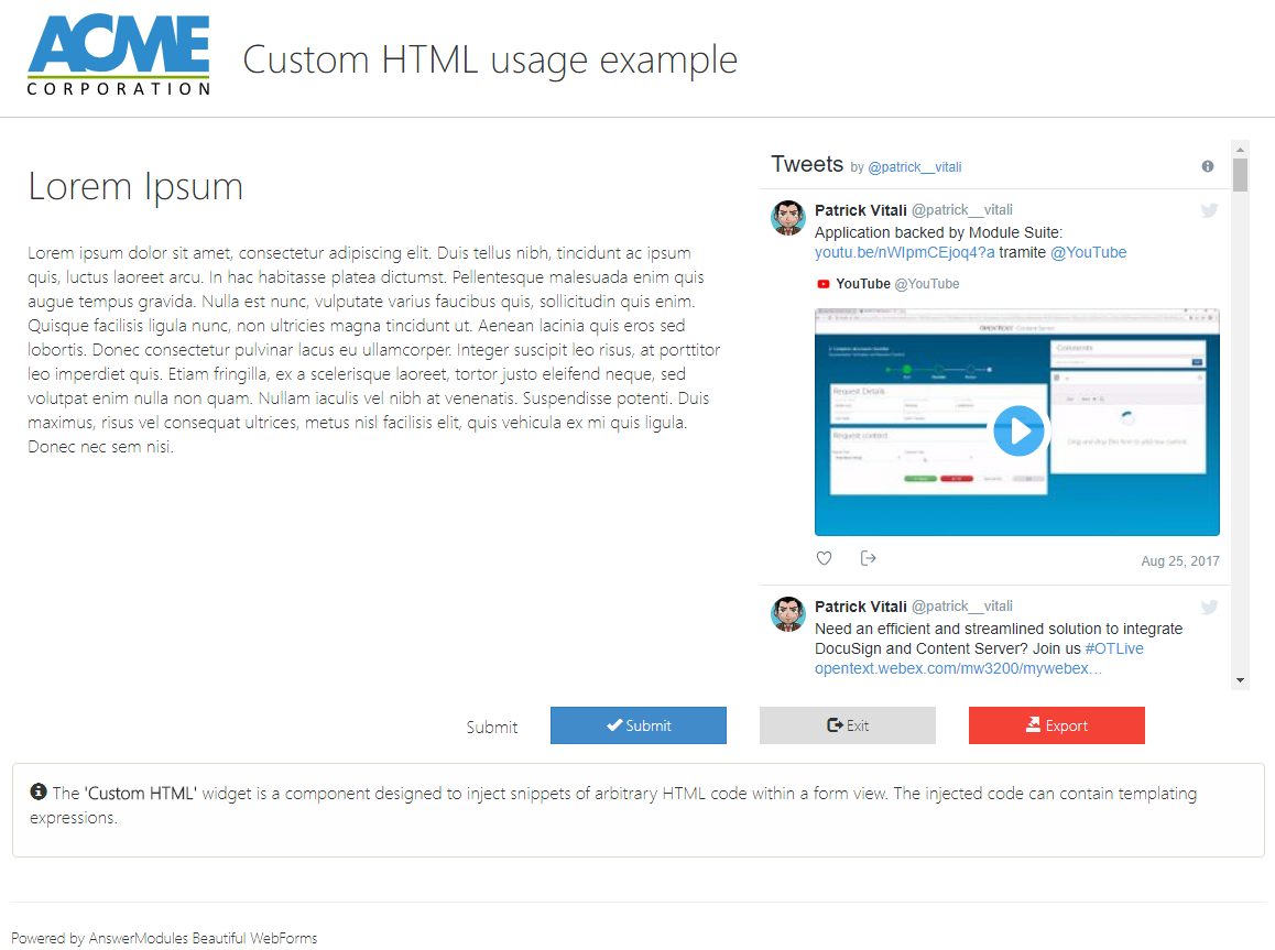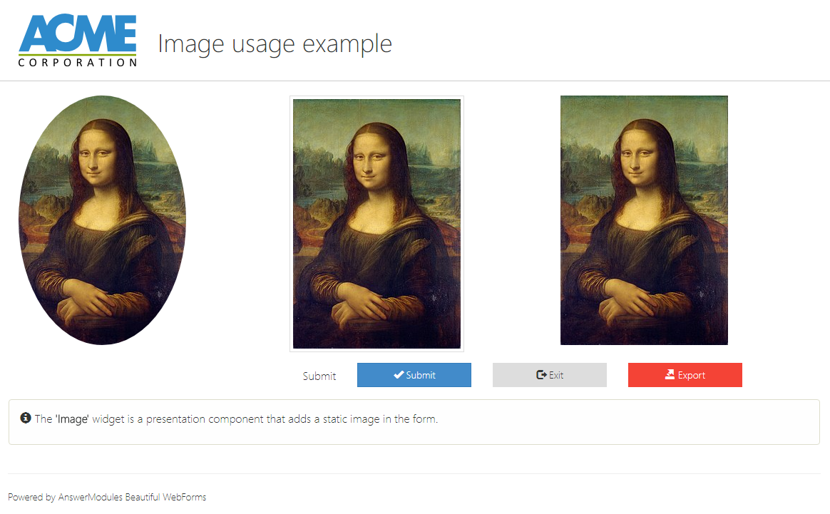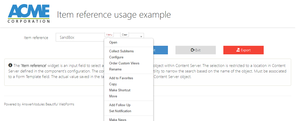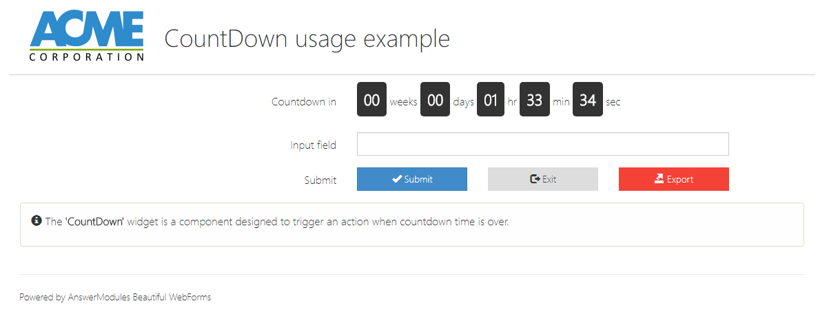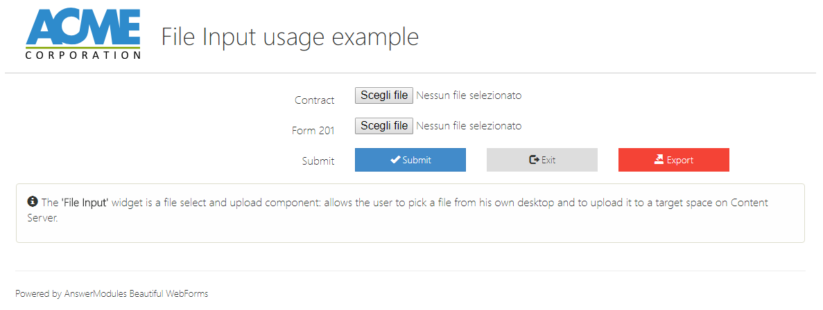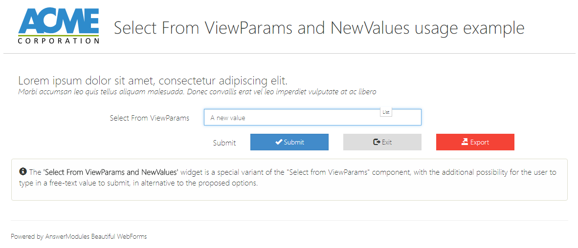 | Action | input | am_customAction | Defines the action to be triggered when the widget is interacted with. This action initiates a server round-trip, allowing back-end processing or updates. Specify either a literal action value or a templating expression (e.g., ${form.viewParams.aVariable}) to dynamically determine the action at runtime. |