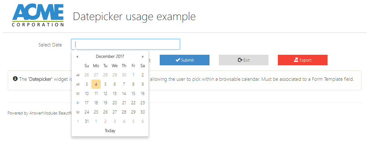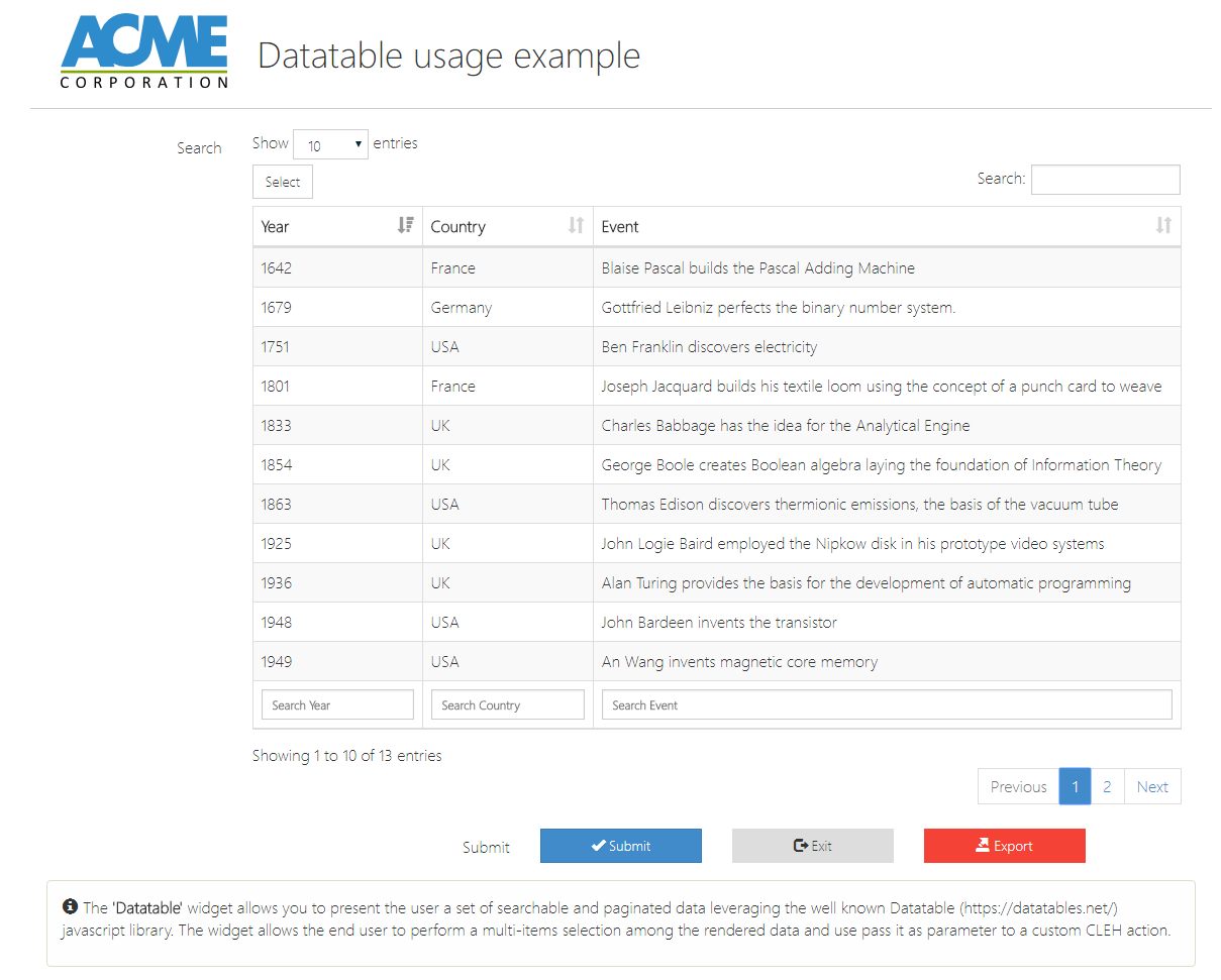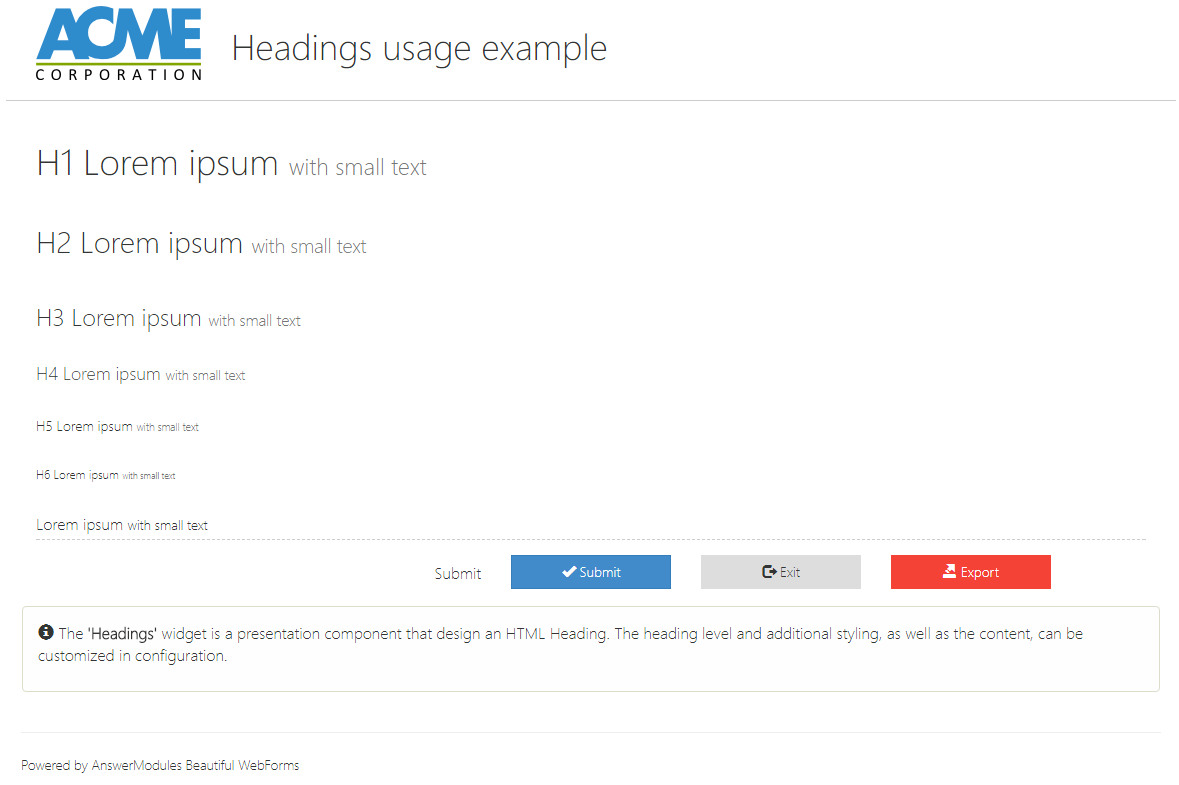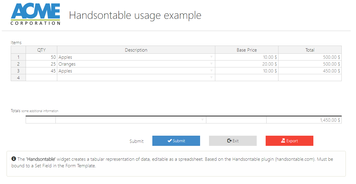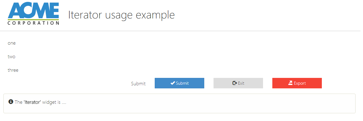 | Widget ID | input | myWidget | A valid DOM id to be associate to the HTML div representing the widget |
