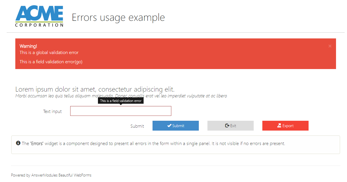 | Text | input | Text+message | Success or error message content |