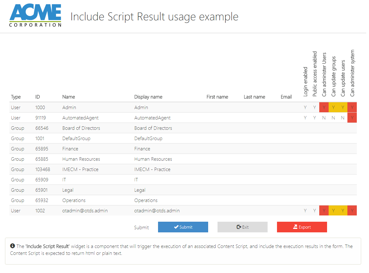 | Wrap It | checkbox | false | Wrap the script result into a 'div' element which uses in the row the amount of space specified by the 'columns' property |
