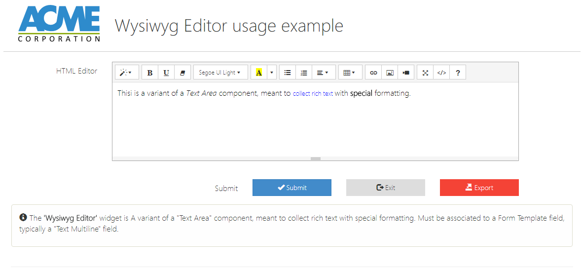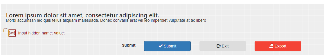 | Button Label | input | Button | The element's label. It can be a literal value or a templating expression (e.g. ${form.viewParams.aVariable}). |