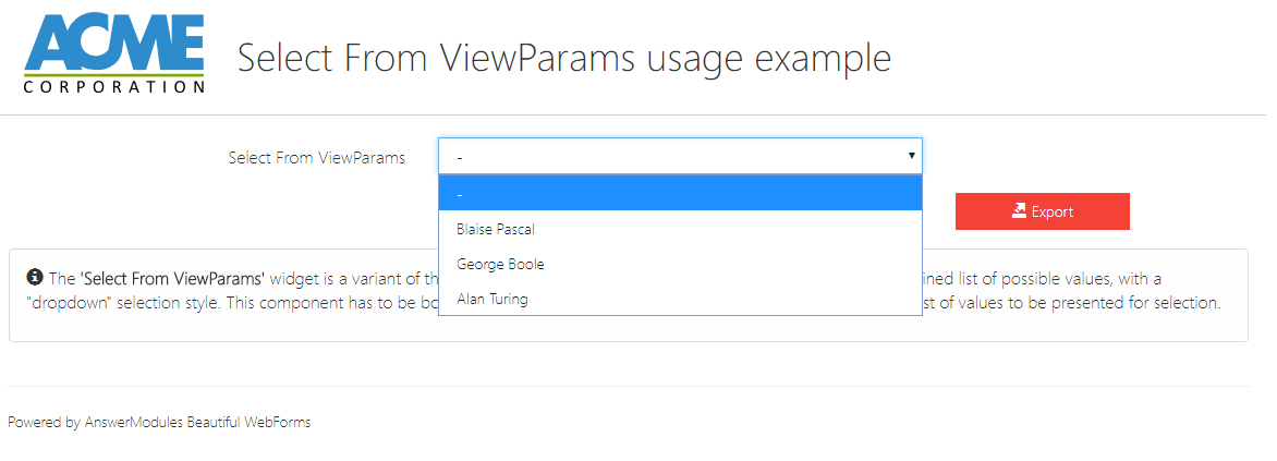 A non visual widget that can be used to initialize the variable views of the form's viewParams with the IDs of all the views associated with the form's template
