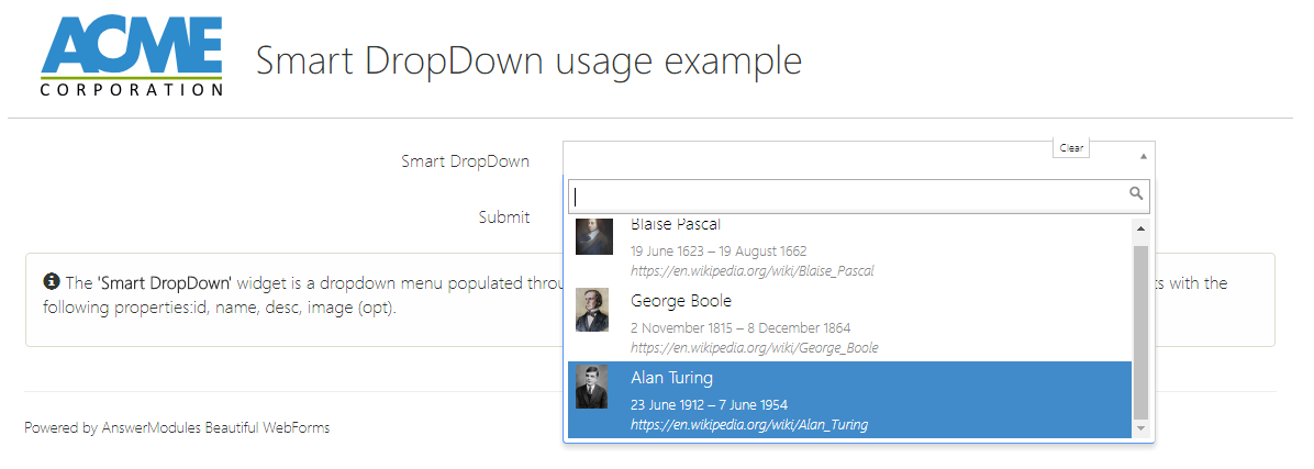 This widget implements a basic javascript function that can be used to initialize the reverse resolution cache on the client side (browser) to support Smart Dropdown widgets. Use this widget if you want to avoid ajax initialization of dropdowns on first page load.