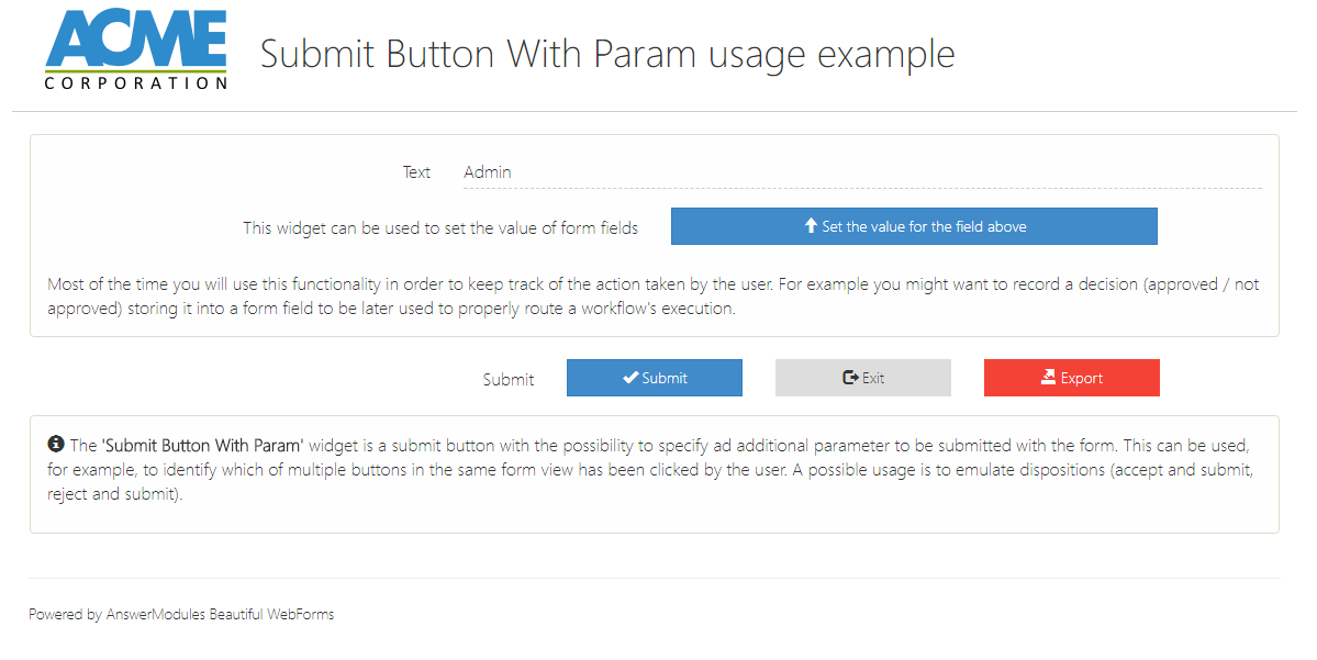 In the example the button is used to set at once two form fields with predefined values.