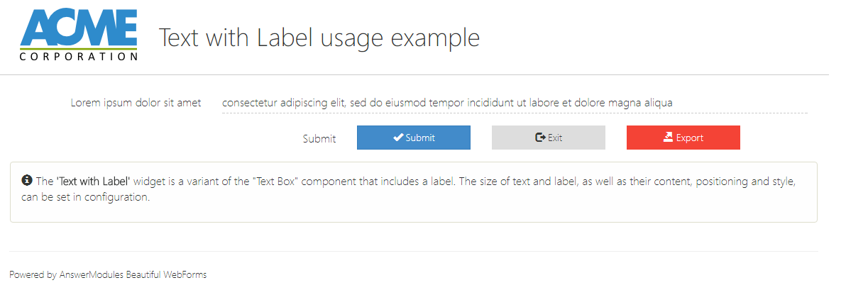 | Label Text | input | XENGADN+DropDown | The element's label. It can be a literal value or a templating expression (e.g. ${form.viewParams.aVariable}). |
