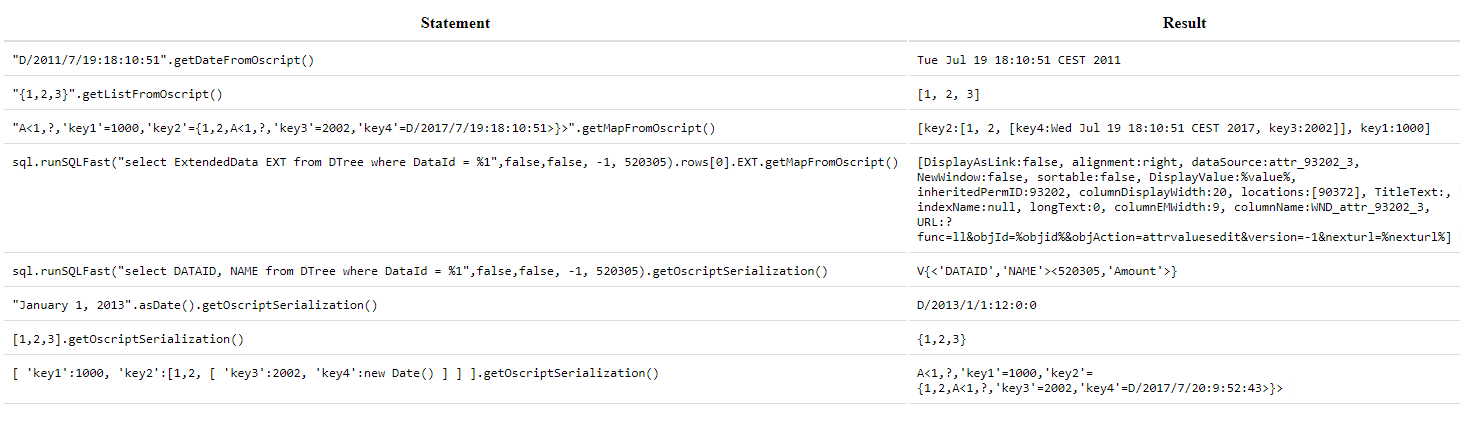 Oscript serializes its data in the form of Strings, for this reason Content Script enhances the String class in order to provide a quick method for retrieving the corresponding Content Script’s objects out of the OScript serialized representation.